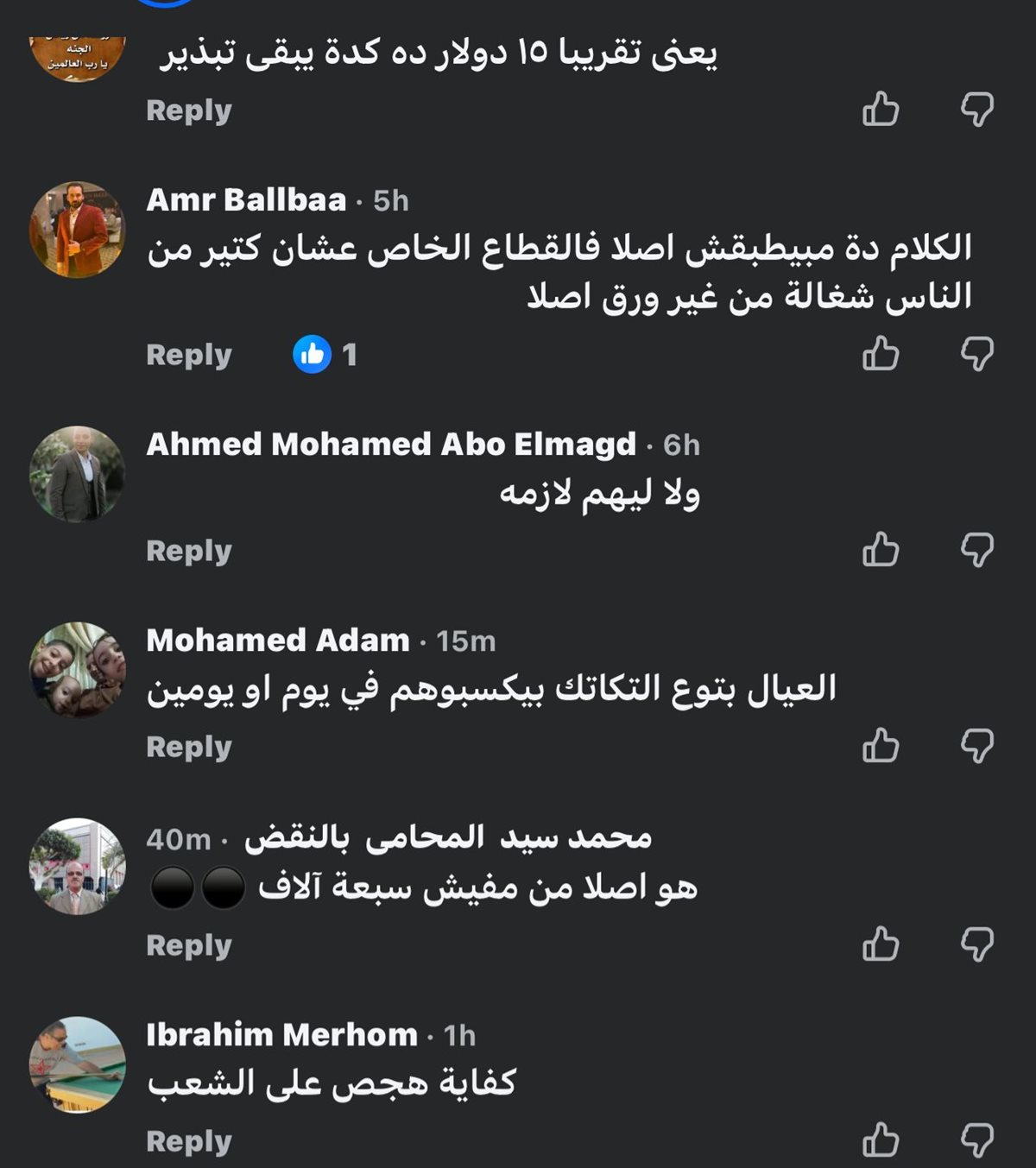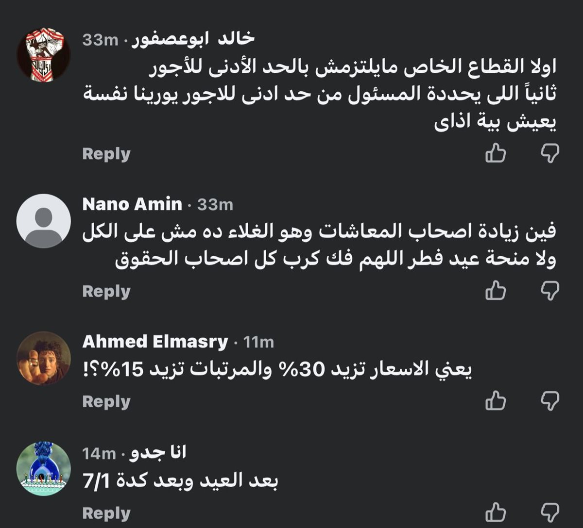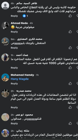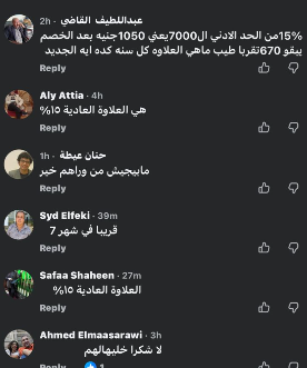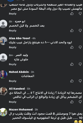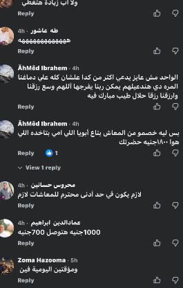 وكانت أبرز التعليقات: “يعني الأسعار تزيد 30% والمرتبات 15%؟ .. ولا ليهم لزمة .. العيال بتوك التكاتك بيكسبوهم في يوم أو يومين .. لا شكرا خليهالهم .. وهنعيش ب 8000 جنيه ياراجل عيب .. 1000 يعني بعد الخصم 700 .. يعني إيران اللي فيها لحرب زادات 60 % واحنا 10 .. مفيش الكلام ده والناس لسه بتقبض 4 و5 الاف جنيه .. ميفولوش عربية .. المفروض في المرار ده يكون اقل مرتب 10000 جنيه .. ده بزخ .. فنكووش .. الحد الادنى ظلم الموظفين اللي من زمان احنا عايزين يحرك مرتبنا الأساسي .. الكلام ده مبيتطبقش في القطاع الخاص".