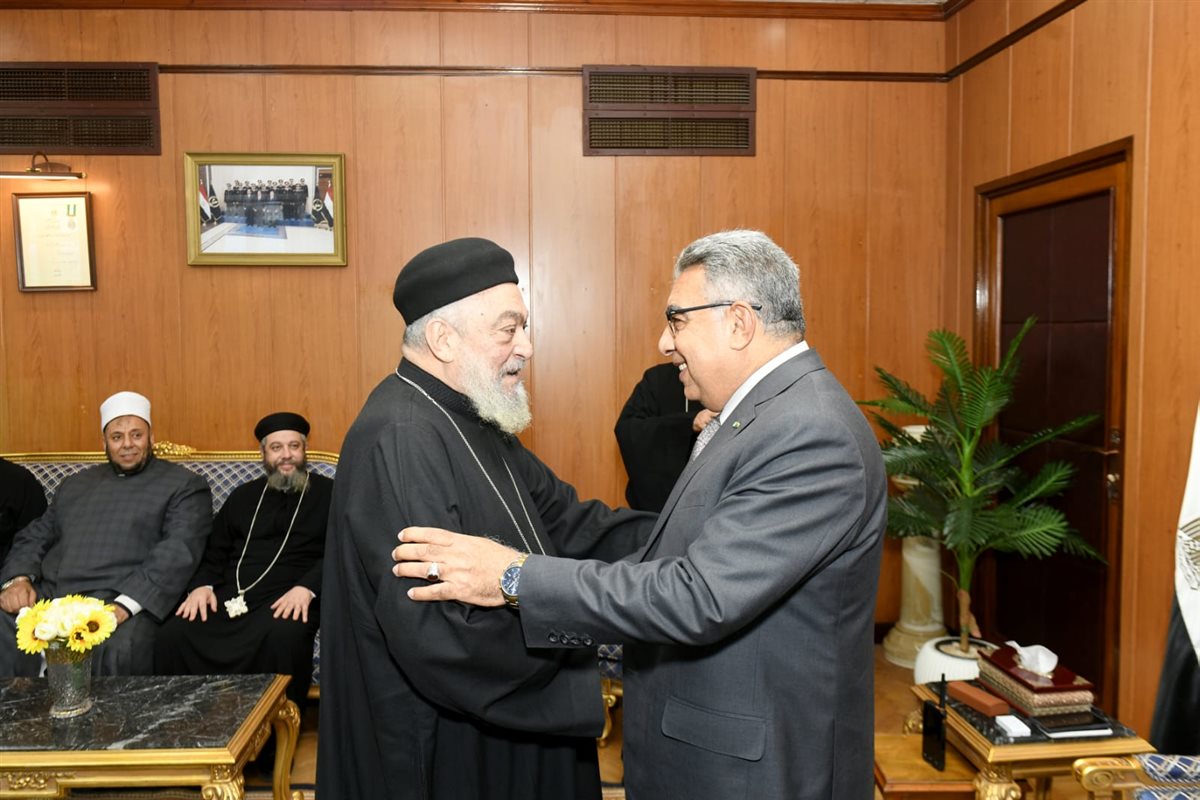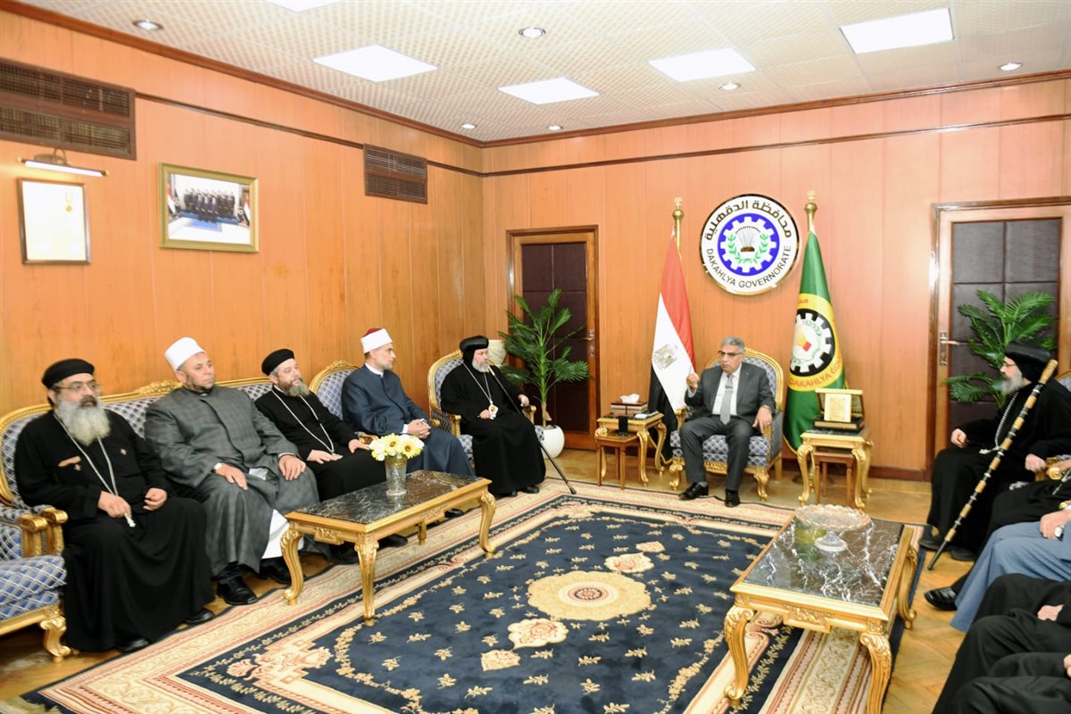 محافظ الدقهلية يستقبل وفد الكنيسة لتقديم التهنئة بعيد الفطر المبارك