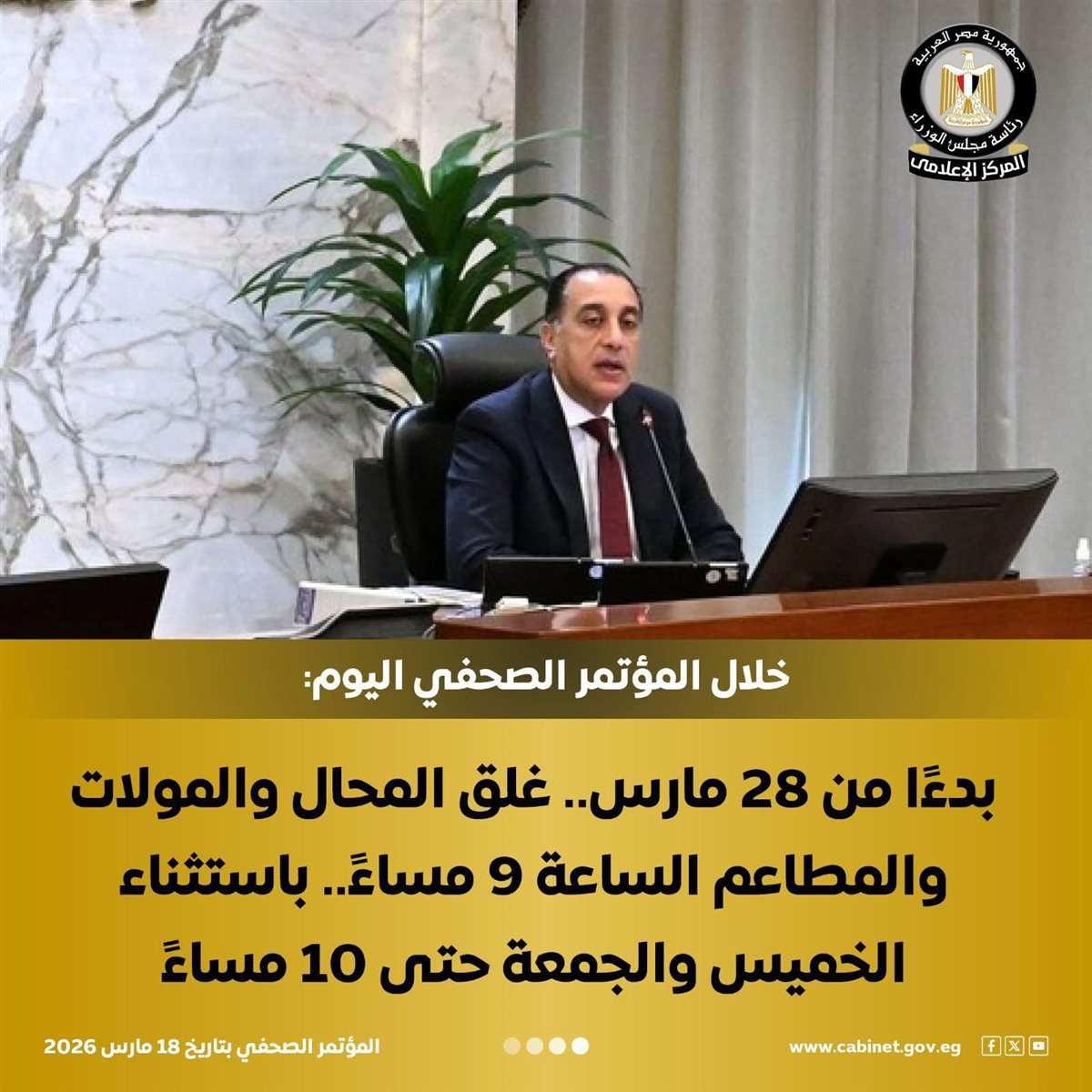 رئيس الوزراء: قرارات ترشيد الاستهلاك لمدة شهر واحد بدءاً من 28 مارس وإذا انتهت الأزمة سنتراجع عنها