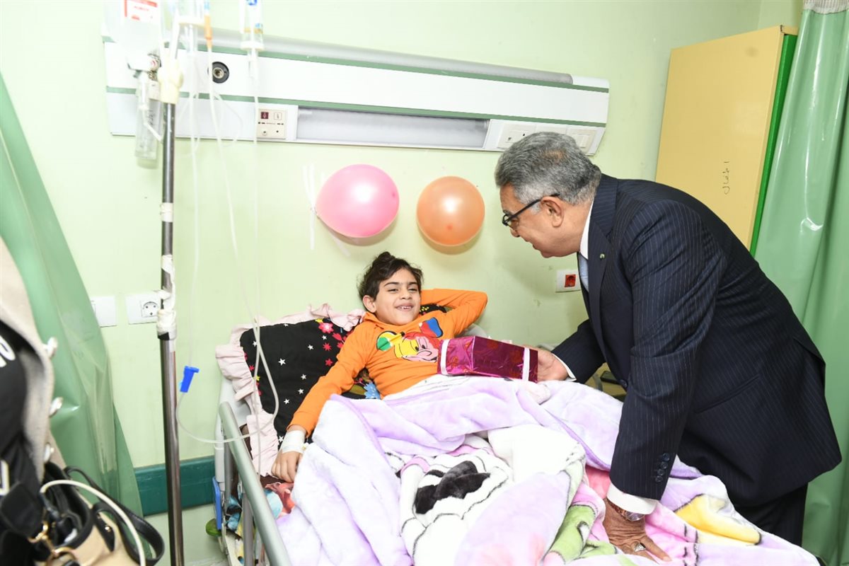 محافظ الدقهلية يشارك أطفال مستشفى الأطفال الجامعي احتفالهم بعيد الفطر
