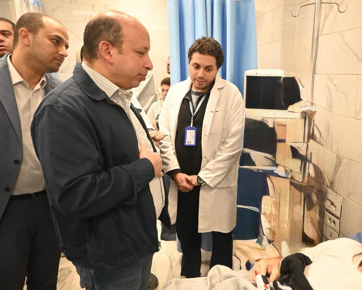 رافق عميد طب قصر العيني خلال الجولة الدكتور حسام حسني المدير التنفيذي لمستشفيات جامعة القاهرة، والدكتور عمر عزام وكيل الكلية لشؤون خدمة المجتمع وتنمية البيئة، والدكتور أحمد طلعت نائب المدير التنفيذي للمستشفيات.