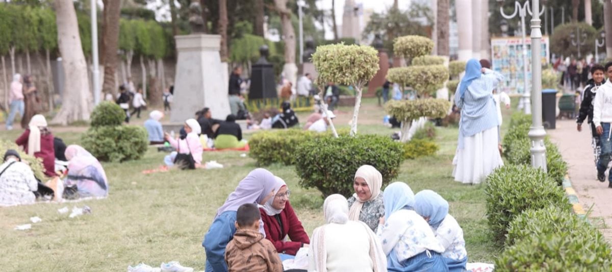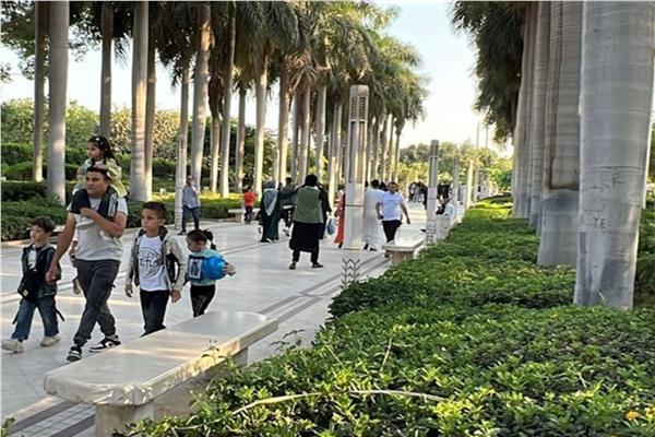 وامتلأت أركان الحديقة بالأسر التي اختارت المكان لقضاء يوم مختلف، ما بين الجلوس على العشب، أو التقاط الصور التذكارية، أو الاستمتاع بالمطاعم والألعاب المائية التي تضيف طابعًا خاصًا للمكان.