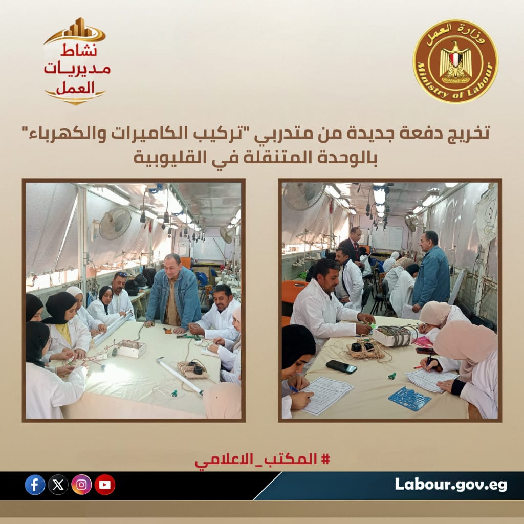 ومن ناحيته، أعلن فوزي صابر مدير مديرية العمل بالقليوبية، عن تخريج دفعة جديدة من المتدربين بقرية كفر شبين القناطر.