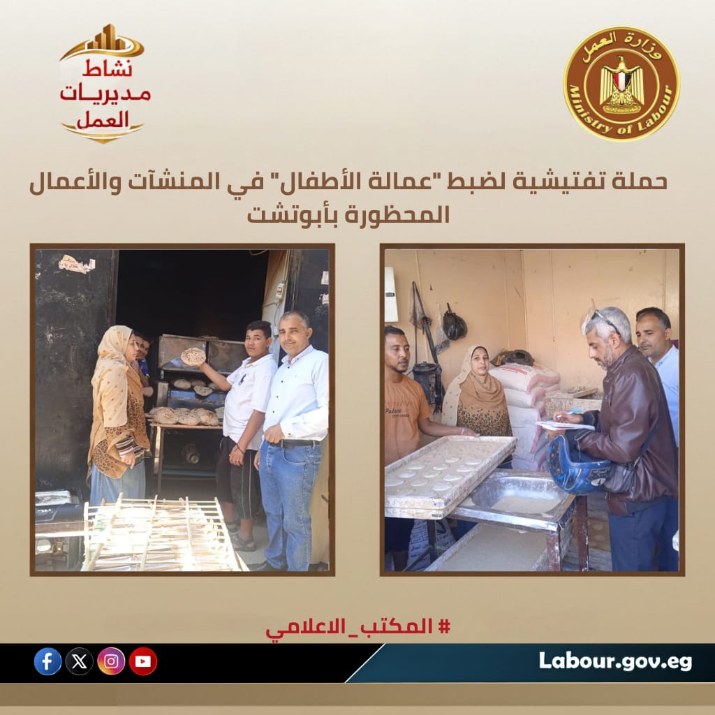 حملة تفتيشية لمتابعة "عمالة الأطفال" في المنشآت والأعمال المحظورة بأبوتشت