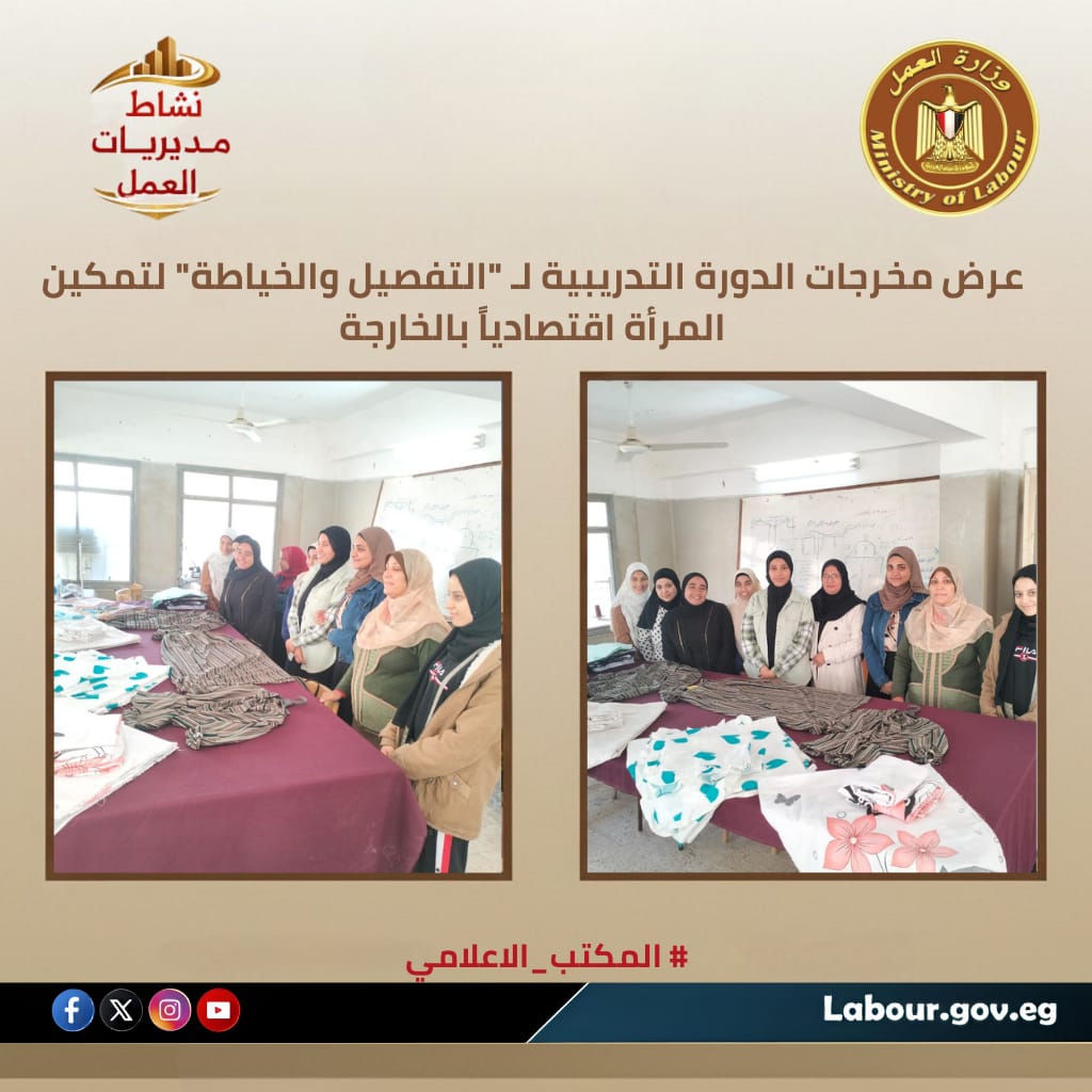 و استعرض مركز التدريب المهني بالخارجة، تحت إشراف أسامة إبراهيم محمد مدير مديرية عمل الوادي الجديد، منتجات الدورة التدريبية لمهنة "التفصيل والخياطة".