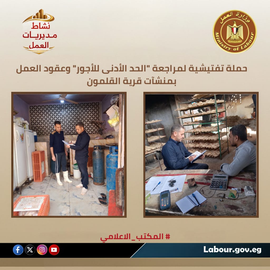 حملة تفتيشية لمتابعة "الحد الأدنى للأجور" وعقود العمل بمنشآت قرية القلمون