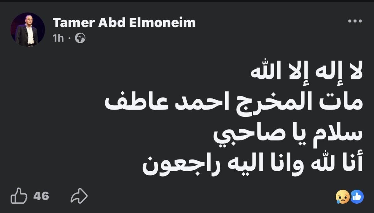 ونعى تامر عبد المنعم المخرج أحمد عاطف، خلال منشور عبر حسابه الشخصي بموقع “فيسبوك”، قائلًا: “لا إله إلا الله مات المخرج احمد عاطف سلام يا صاحبي إنا لله وانا اليه راجعون”.