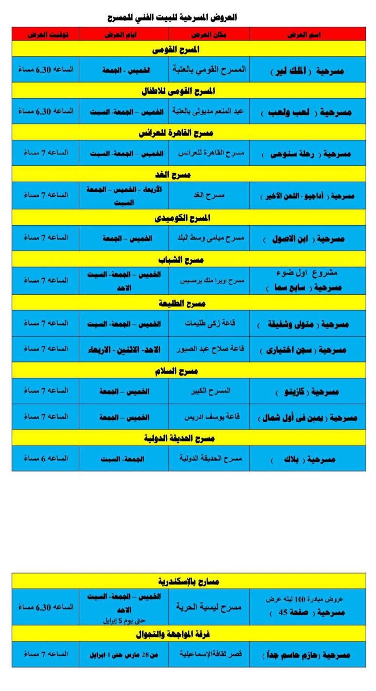 عاجل.. تعديل مواعيد العروض المسرحية ترشيدًا لاستهلاك الطاقة (تفاصيل)