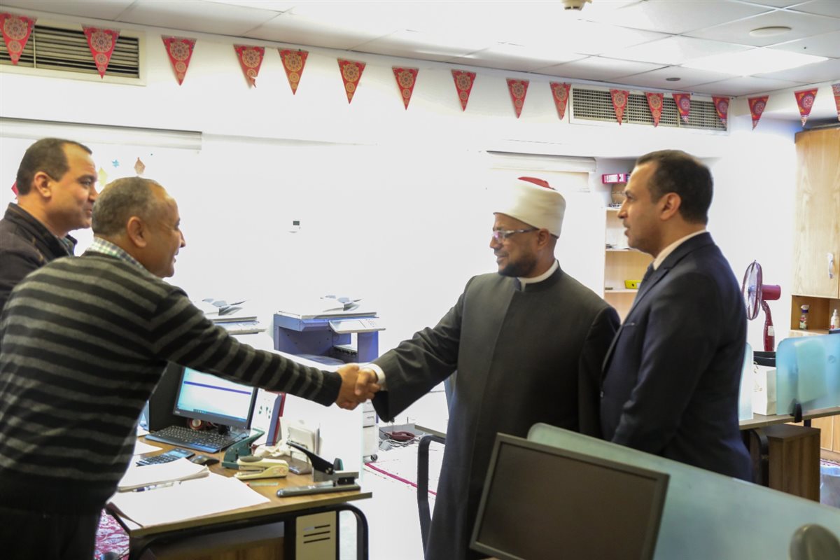 وشملت الجولة المرور على جميع إدارات المختلفة، حيث اطمأن على عودة العمل بكامل طاقته، والتزام العاملين بمواعيد الحضور والانصراف، بما يضمن استمرارية تقديم الخدمات الدعوية والعلمية التي يضطلع بها المجمع.