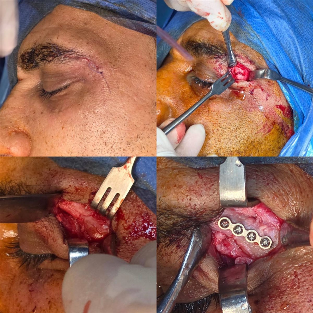 وأضاف أنه تم التعامل مع الحالة من خلال خطة جراحية دقيقة، تضمنت استخدام مدخل جراحي تجميلي عبر الحاجب لتثبيت الكسور العلوية بما يضمن اختفاء الأثر الجراحي بعد الالتئام، إلى جانب الاعتماد على تقنية التثبيت من داخل الفم لتجنب أي شقوق خارجية بالوجه، مع إجراء رد وتثبيت الكسور باستخدام شرائح ومسامير طبية دقيقة وفق أحدث الأساليب الجراحية.