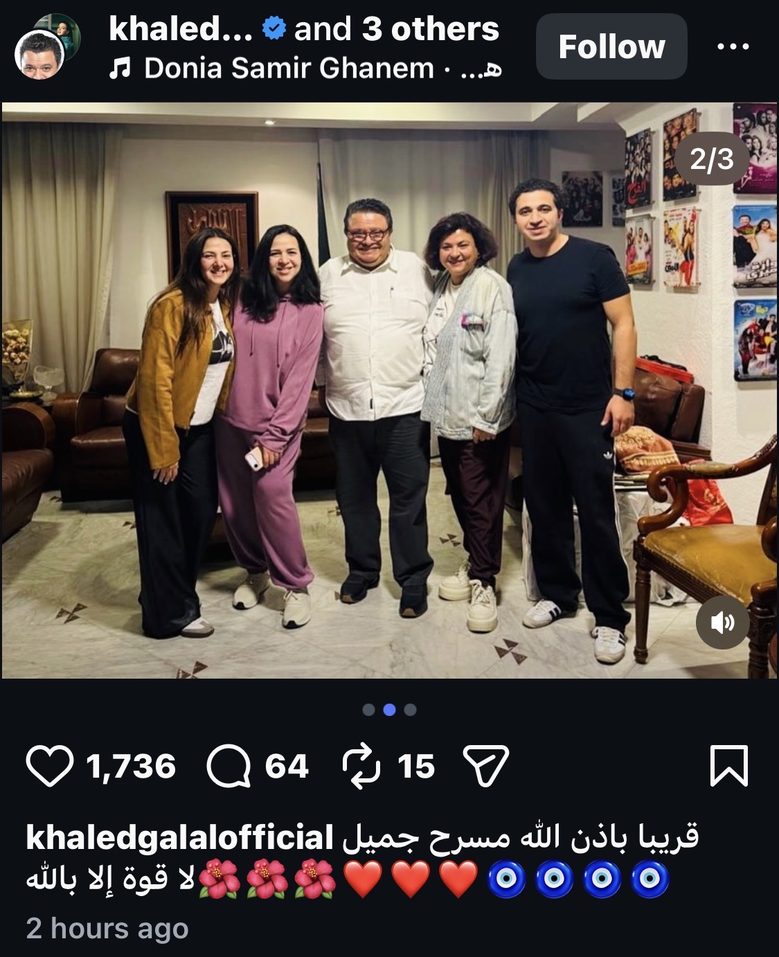 وكشف خالد جلال عن كواليس التحضيرات للعمل، حيث نشر صورًا تجمعه بدنيا وإيمي سمير غانم، إلى جانب المنتج أحمد السبكي، عبر حسابه على موقع «إنستجرام»، وعلق قائلًا: «قريبًا بإذن الله مسرح جميل.. ولا قوة إلا بالله».