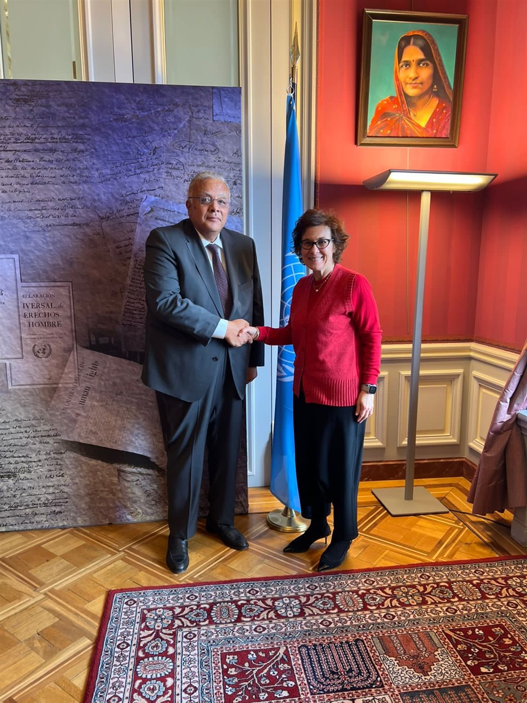 وعلى هامش الاجتماعات أجرى رئيس المجلس سلسلة من اللقاءات الثنائية مع عدد من المسؤولين الدوليين، من بينهم السيدة آمنة بوعياش، رئيسة التحالف الدولى للمؤسسات الوطنية لحقوق الإنسان ورئيسة المجلس الوطني لحقوق الإنسان بالمملكة المغربية، والسيدة ندى الناشف، نائبة المفوض السامي للأمم المتحدة لحقوق الإنسان، حيث تناول معهم سبل تعزيز التعاون وتبادل الخبرات، ودعم أدوار المؤسسات الوطنية في التعامل مع التحديات المستجدة في مجال حقوق الإنسان.