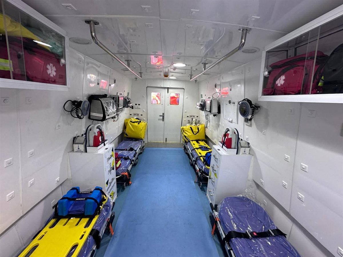 وتم تصميم اللنش ليكون قادراً على نقل 4 حالات مرضية في وقت واحد، وهو مجهز بأحدث ما توصلت إليه التكنولوجيا الطبية، وتشمل تجهيزاته: جهاز تنفس صناعي (Ventilator)، وجهازين لقياس العلامات الحيوية (Monitor)، وجهازين لمزيل الرجفان القلبي (AED)، وجهازين للشفط الكهربائي (Suction)، وجهازين للضغط، وجهازين للاستنشاق (Nebulizer)، و6 أسطوانات أكسجين سعة 10 لتر بضغط 200 بار، وصيدلية متكاملة للأدوية والمستلزمات الطبية، بالإضافة إلى حقائب تثبيت الكسور متعددة المقاسات.