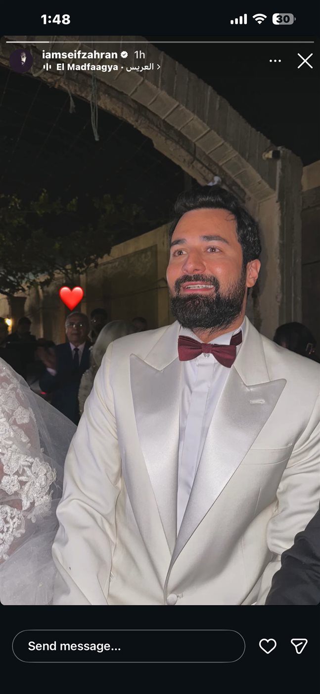 نشر سيف زهران صورة أحمد حاتم ببدلة الزفاف متعمدًا إخفاء العروس وعدم الكشف عن هويتها، ما أثار الشكوك والتساؤلات بين الجمهوز متسائلين من تكون؟