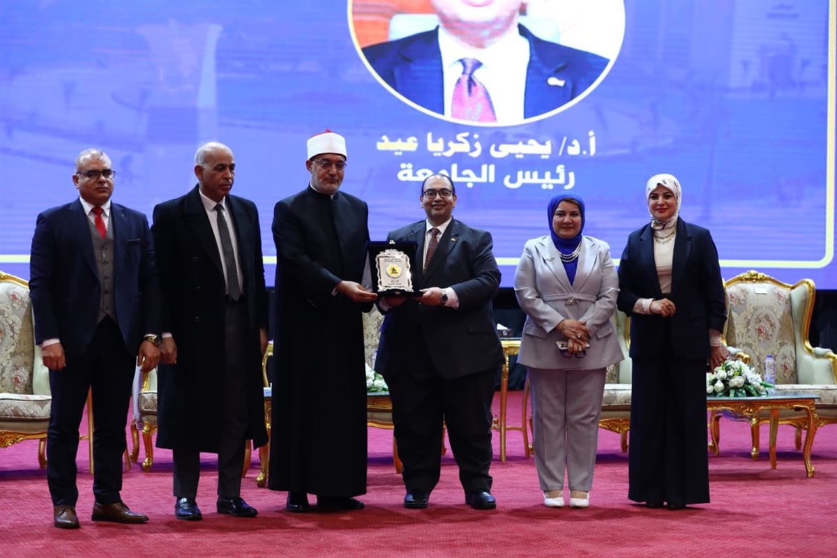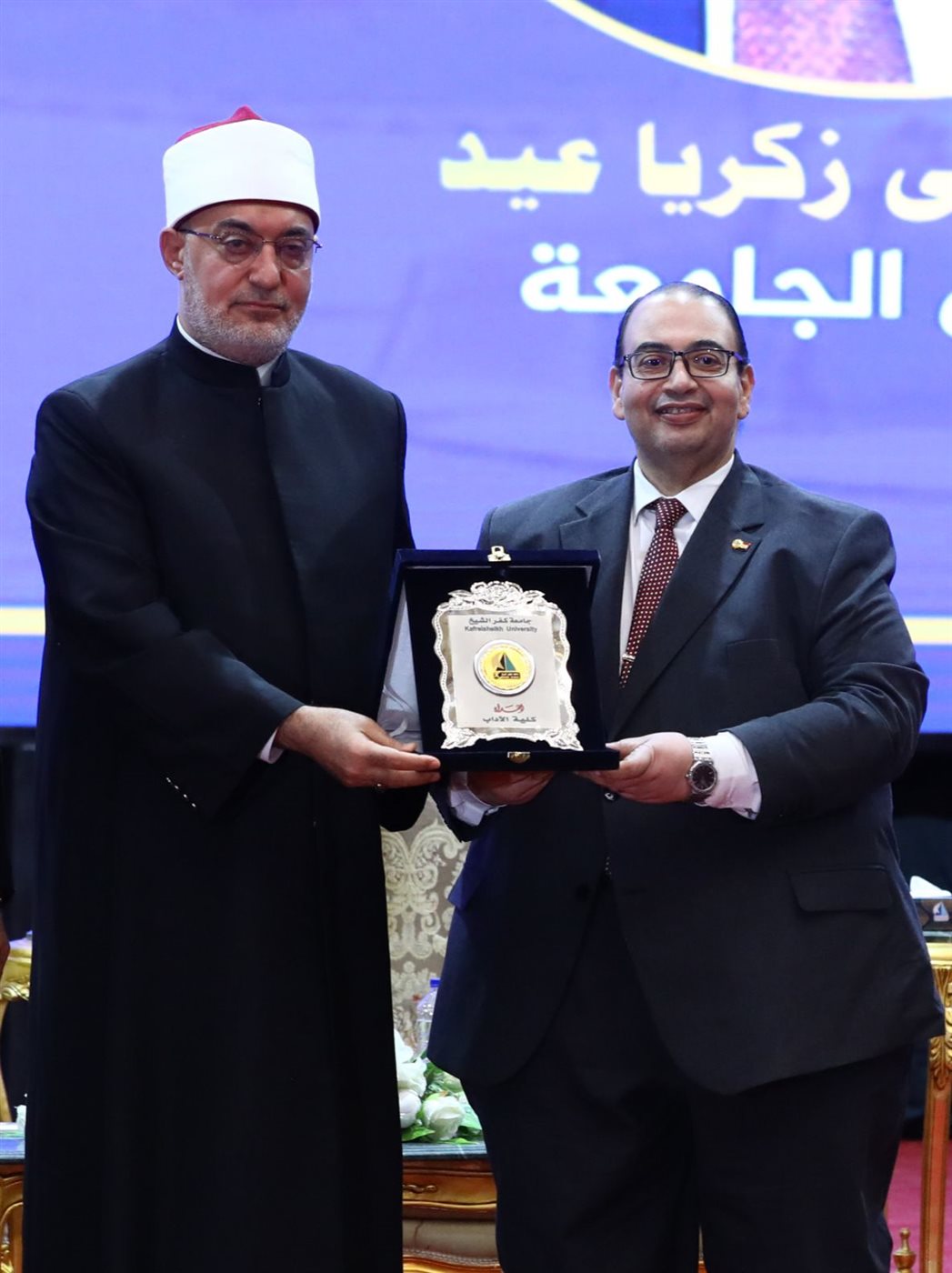 وفي ختام الندوة، قدَّم رئيس الجامعة درع جامعة كفر الشيخ لفضيلة مفتي الجمهورية؛ تقديرًا لجهود فضيلته العلمية والدعوية، وإسهاماته في ترسيخ الوعي الديني الرشيد ومواجهة التحديات المعاصرة، في لفتة تعكس تقدير المؤسسات العلمية لدور العلماء في توجيه المجتمع وبناء وعيه.