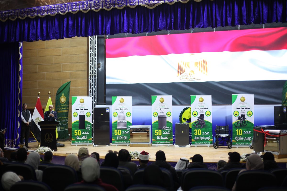 وأكد «بيت الزكاة والصدقات»، في بيان له اليوم الأربعاء الأول من أبريل 2026م، أن القافلة تشمل توزيع مساعدات غذائية متكاملة تُقدَّر بنحو 200 طن على الأُسَر المستحِقّة بقرى محافظة شمال سيناء ونجوعها، بالإضافة إلى توفير 50 جهازًا متكاملًا لتجهيز الفتيات غير القادرات للزواج، فضلًا عن توزيع 40 كرسيًّا متحركًا لذوي الهمم، وذلك في احتفالية كبرى أقيمت بمبنى ديوان عام المحافظة بمدينة العريش.