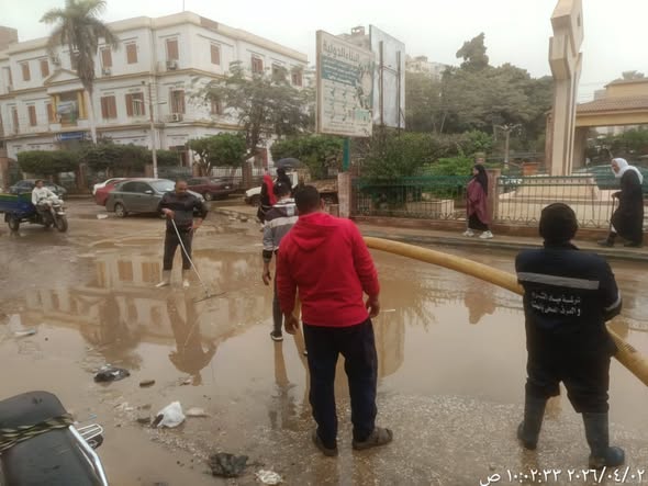 حيث تم الدفع بالمعدات وسيارات الكسح وشفط المياه ، لرفع تجمعات الأمطار من الشوارع والميادين، مع التركيز على المناطق الحيوية والمحاور الرئيسية ومداخل القرى، وشملت الجهود رفع كميات المياه المتراكمة أولًا بأول، إلى جانب حصر ورفع اللوحات الإعلانية والأشجار وأعمدة الإنارة التي تأثرت وسقطت بفعل شدة الرياح.