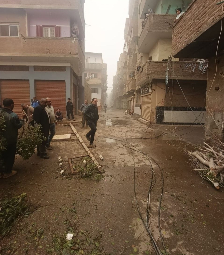 وفي مركز ومدينة ديرب نجم، تدخلت الفرق التنفيذية لإزالة شجرة سقطت على طريق «كفر الجنيدي/المجفف»، وأخرى في قرية بهنيا تسببت في قطع أسلاك الكهرباء، مع فصل التيار الكهربائي من المحول الرئيسي وإعادة التيار بعد إتمام أعمال الصيانة وشد الأسلاك.