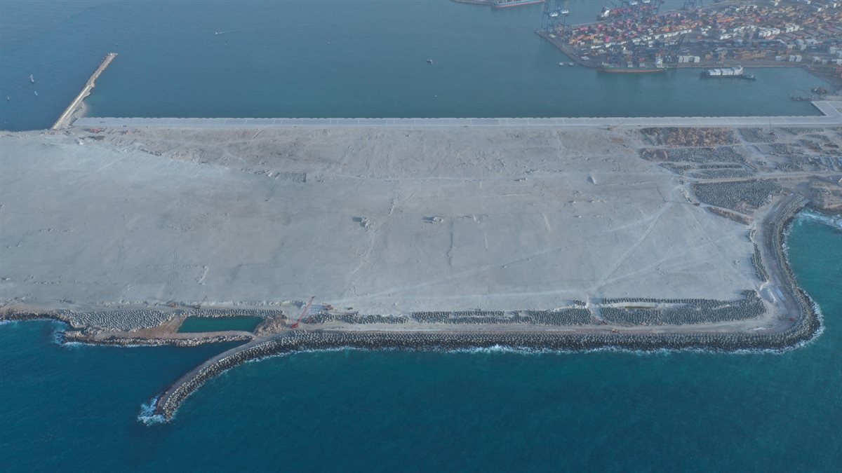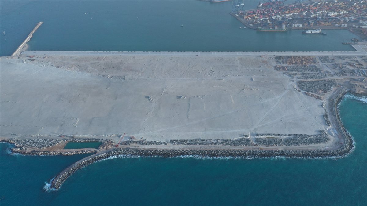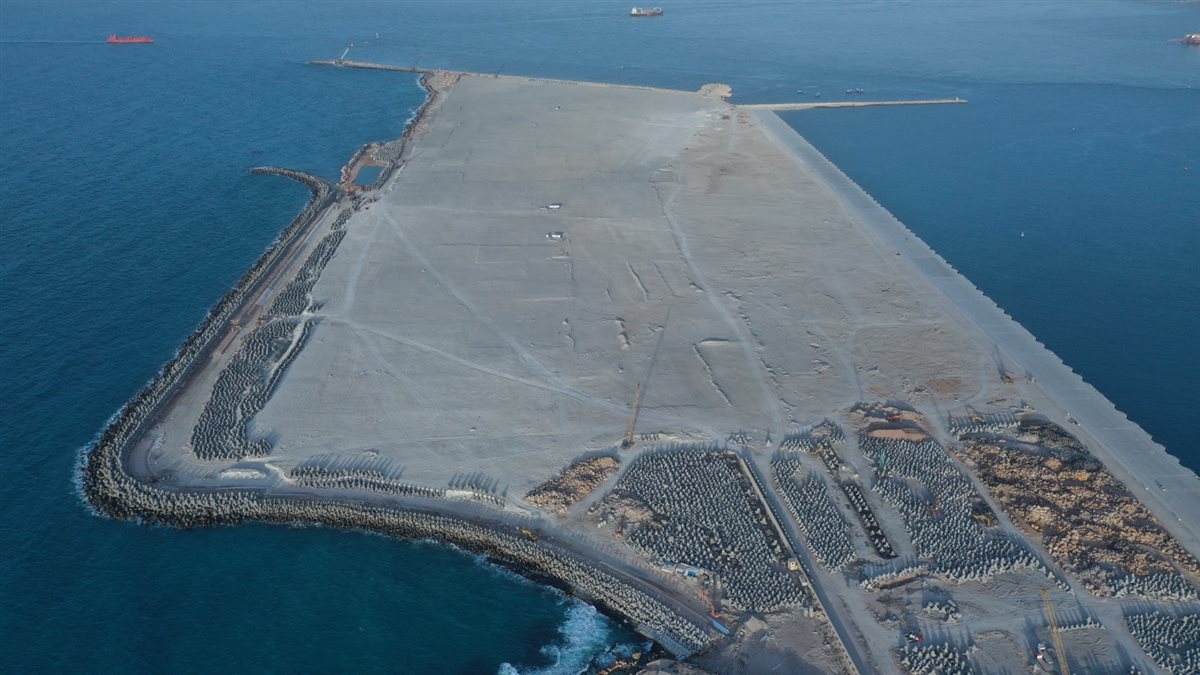 جاري تنفيذ أعمال البنية الفوقية، بما في ذلك إنشاء المرافق اللوجستية وأنظمة إدارة الحاويات الحديثة.