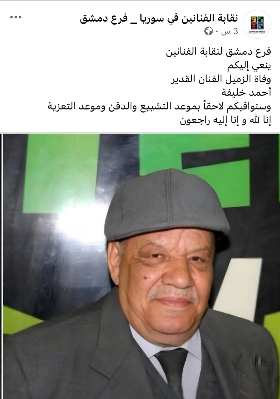 وفاة الفنان السوري أحمد خليفة