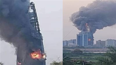 "أبرز معالم العاصمة".. حريق ضخم في برج النيل بالسودان