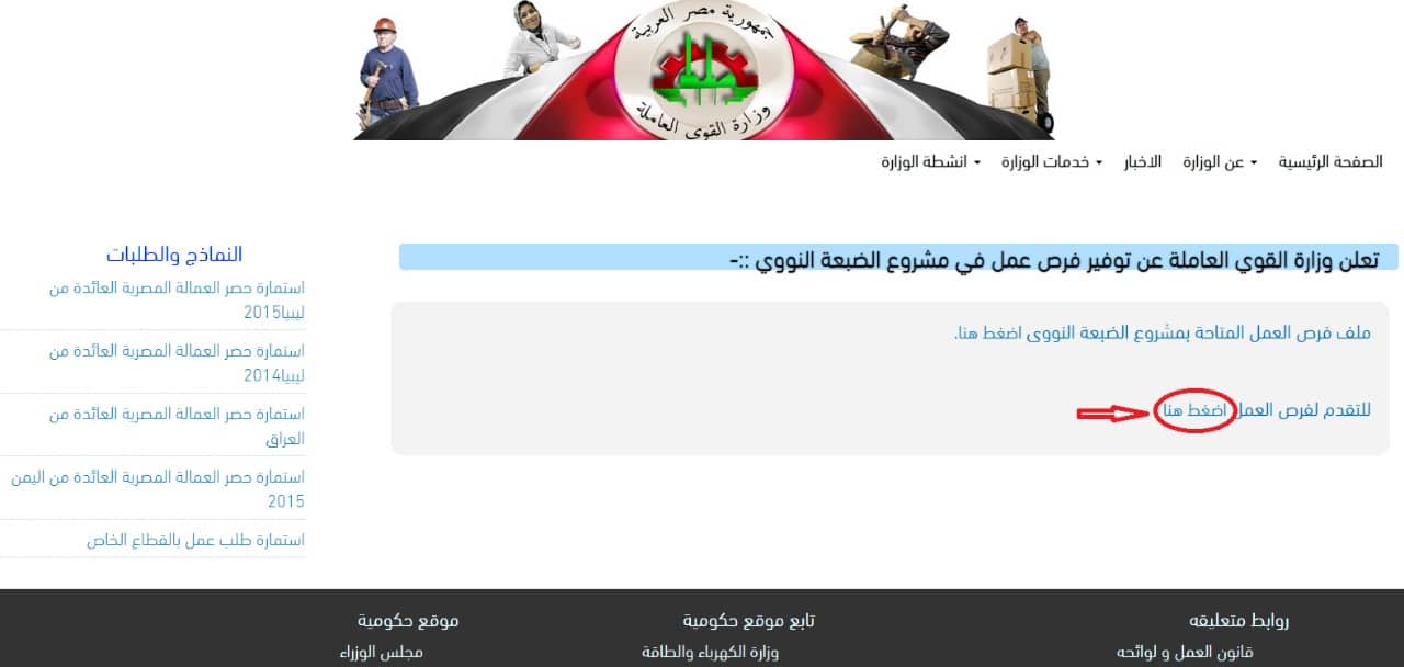 يذكر ان وزارة القوى العاملة من خلال الإدارة العامة للتشغيل ومعلومات سوق العمل، قامت بالتنسيق مع شركتى تريست روسيم، ونيكيمت أتوم ستروى العاملة فى مشروع المحطة النووية، لتوفير تلك الفرص للشباب المصرى الراغب فى العمل.