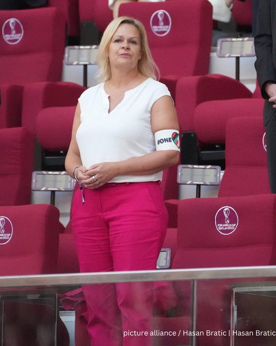 قدمت نانسي فيزر وزيرة الداخلية الألمانية، الدعم لـ "مجتمع ميم" أثناء حضورها مباراة منتخب الماكينات أمس أمام اليابان في الجولة الأولى من دور المجموعات لكأس العالم.