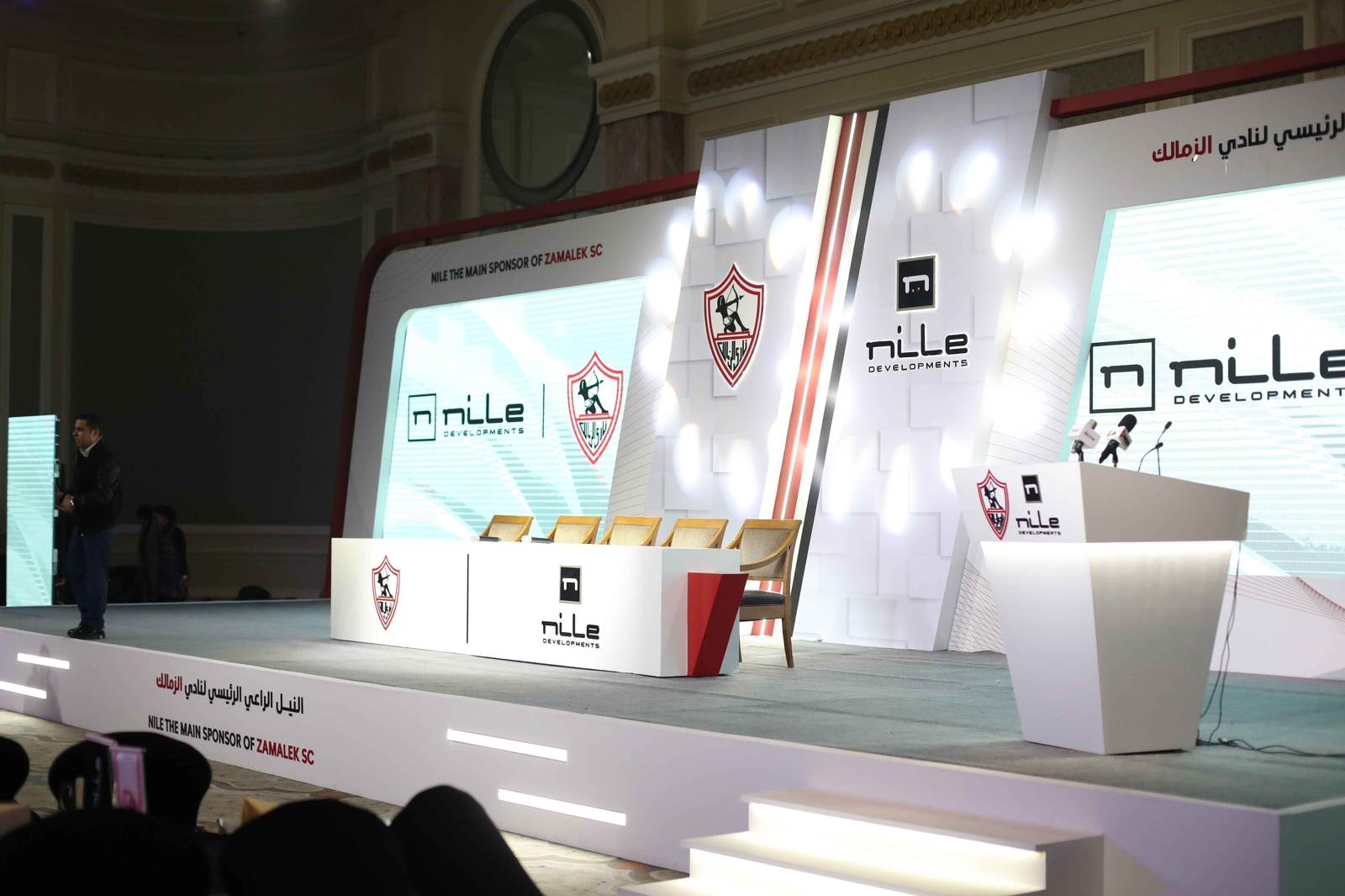 التحضيرات النهائية قبل مؤتمر الإعلان عن راعي نادي الزمالك.. صور