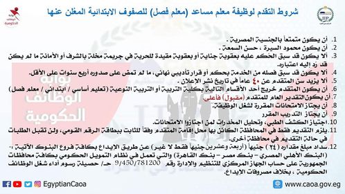 اقرأ ايضًا.. الجهاز المركزي للتنظيم يعلن عن شروط وظيفة معلم فصل