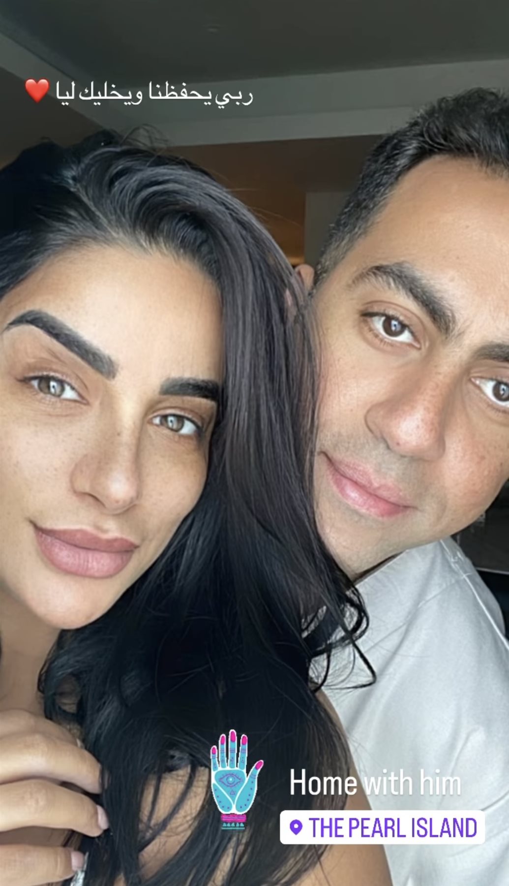 ظهرت جوري بكر في الصورة التي نشرتها عبر خاصية (الاستوري) بموقع إنستجرام، رفقة زوجها، معلقة: "ربي يحفظنا ويخليك ليا".
