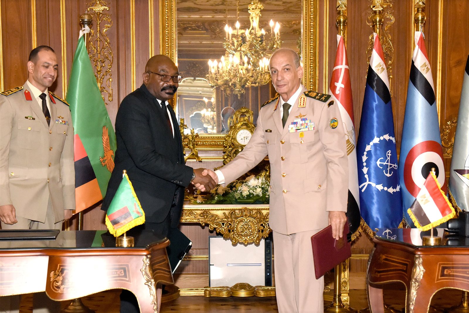 الفريق أول محمد زكى يناقش مجالات التعاون العسكري مع وزير دفاع جمهورية زامبيا