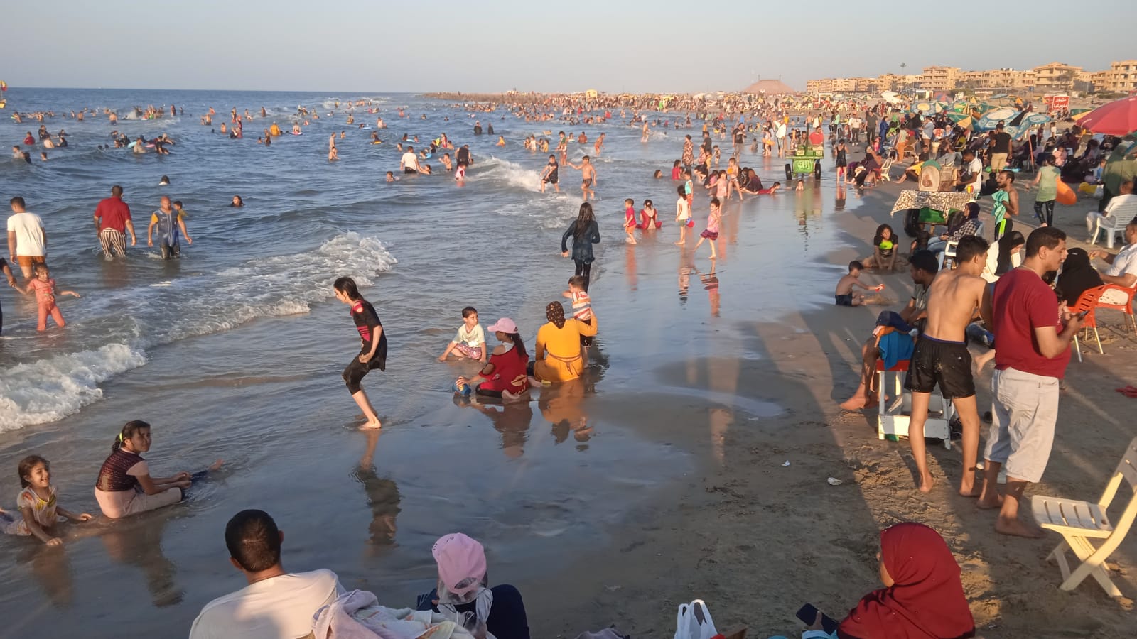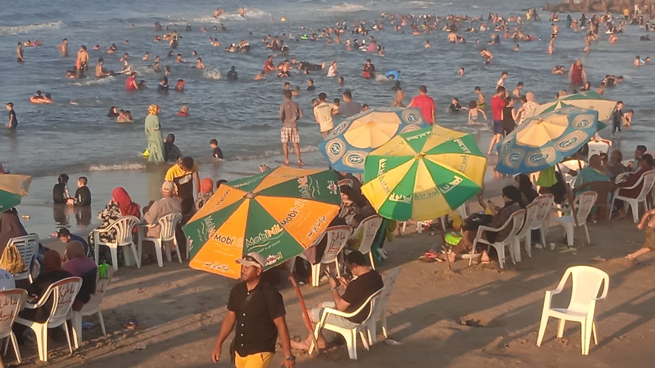 زحام شديد وإقبال غير مسبوق على شواطئ مصيف بلطيم الـ 6