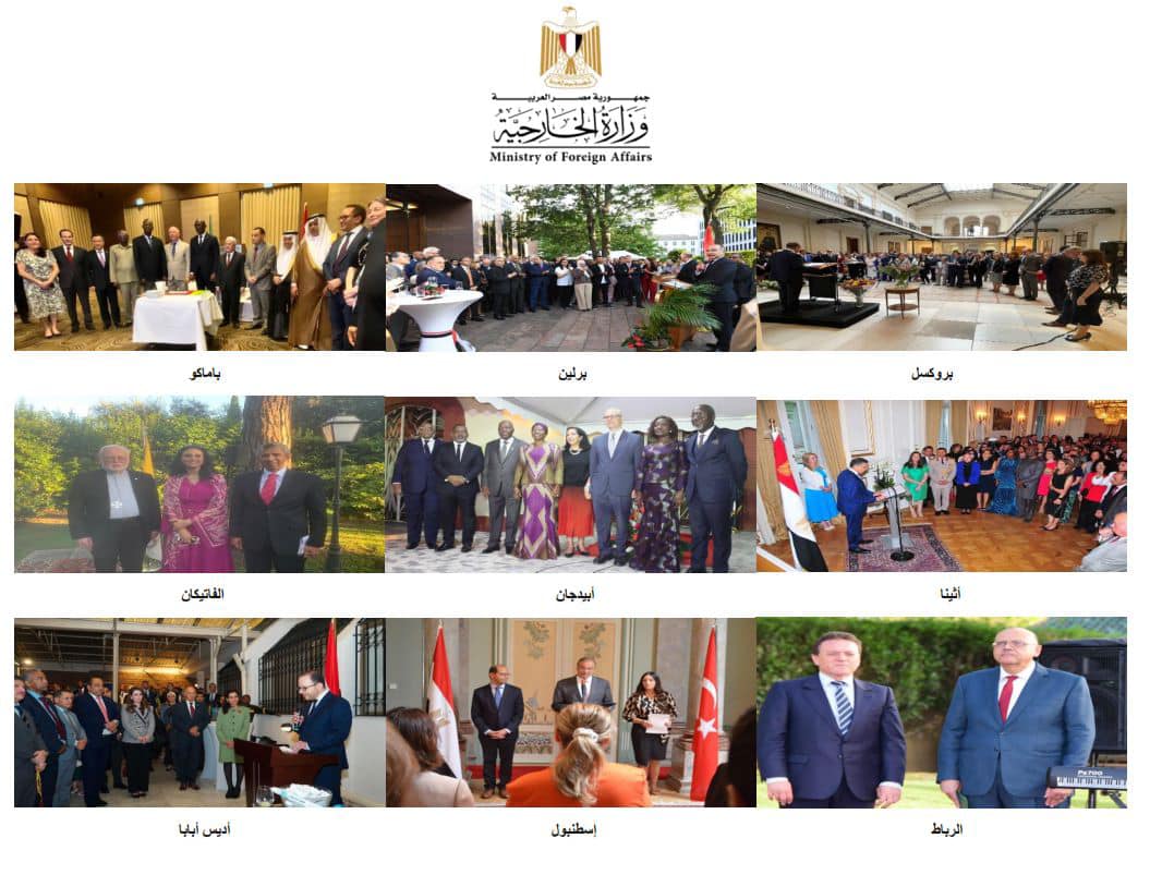 قد أقامت بعثات مصر بالخارج حفلات استقبال للاحتفال بهذه المناسبة، وحرص كبار المسئولين والمجتمع الدبلوماسي والشخصيات المؤثرة والإعلاميين وأعضاء دوائر صنع القرار وممثلي الجالية المصرية بدول الاعتماد على المشاركة بها وتقديم التهنئة لسفرائنا بهذه المناسبة.
