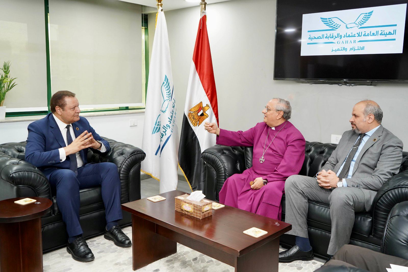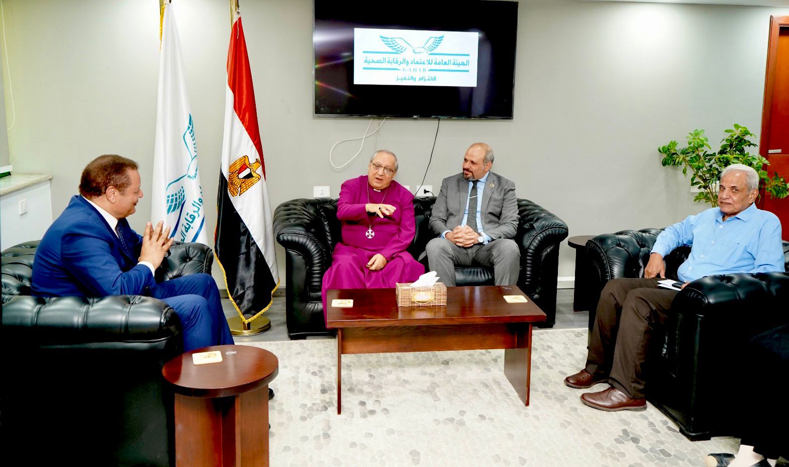 استقبل الدكتور أحمد طه رئيس الهيئة العامة للاعتماد والرقابة الصحية، وفد مستشفيات هرمل الخيري التابعة للكنيسة الأنجليكانية، برئاسة المطران الدكتور منير حنا، وذلك لبحث آليات تطبيق معايير الجودة الوطنية والحصول على الاعتماد وفقا للمعايير الصادرة عن "GAHAR" والحاصلة على الاعتماد الدولي من الاسكوا.