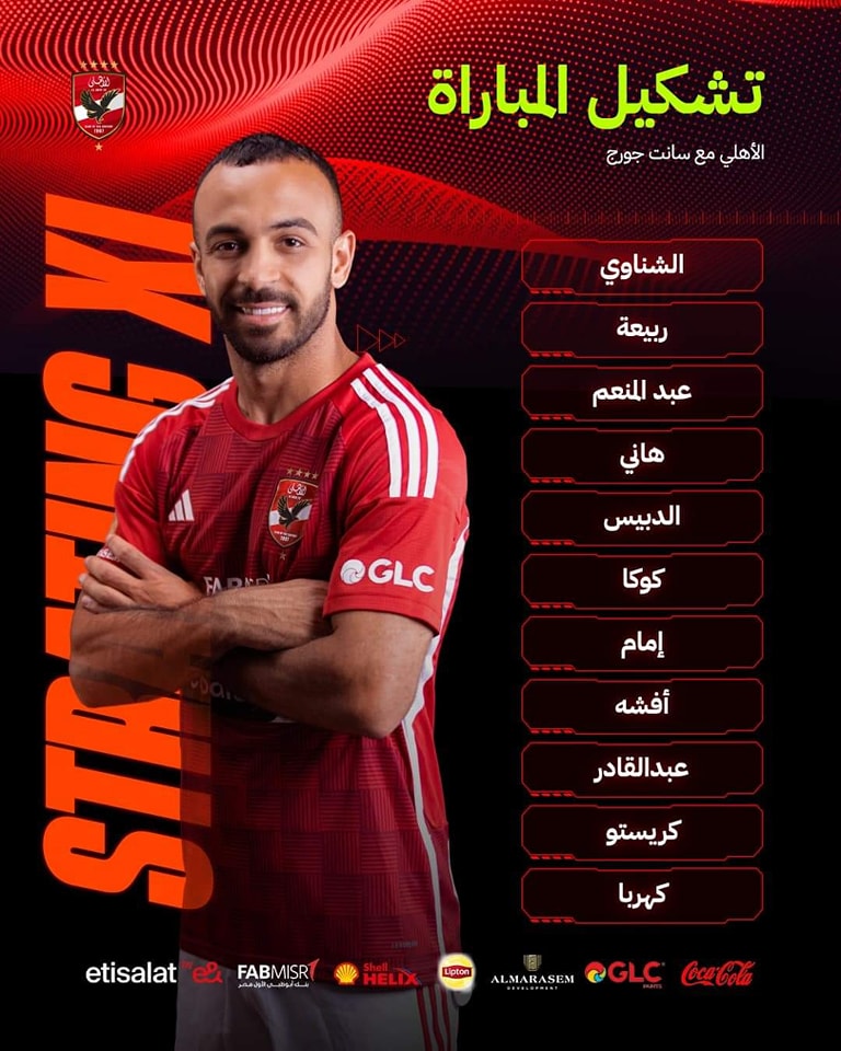 تشكيل الأهلي الرسمي أمام سان جورج بدوري الأبطال