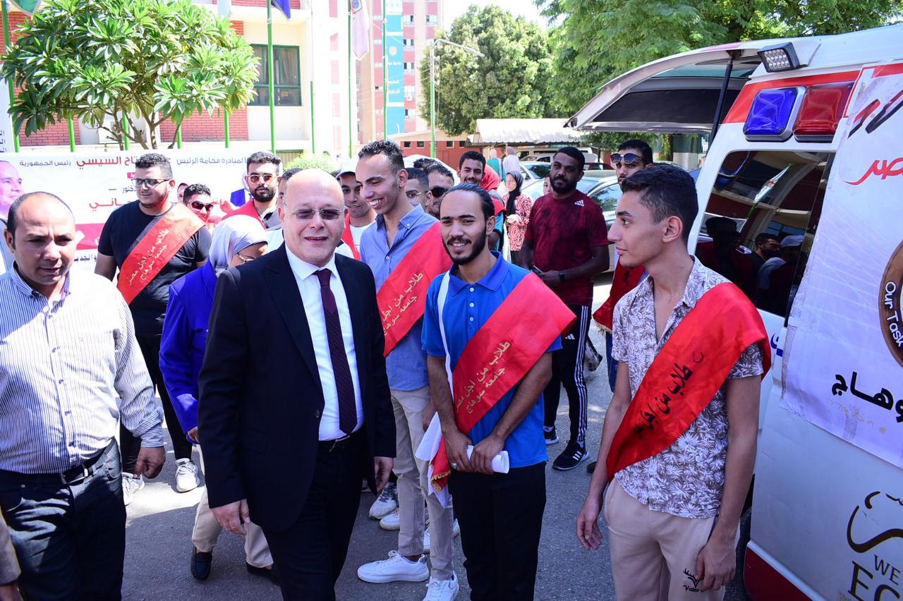 صور.. انطلاق حملة التبرع بالدم في جامعة سوهاج