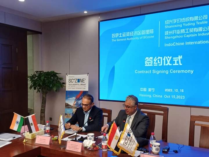 و أولها مع شركة sholaoxing Yuding textile شاوشينج ياندينج للمنسوجات وهي شركة متخصصة في إنتاج وتجارة الأقمشة، حيث تستهدف الشركة إنشاء مصنع جديد تحت اسم "DINGHANG Egypt Co" في منطقة غرب القنطرة الصناعية بمساحة 12,7 ألف متر مربع باستثمارات قدرها 5 ملايين دولار مما يوفر حوالي 100 فرصة عمل مباشرة، كما يستهدف المصنع التصدير إلى السوق الأمريكية والأسواق الأوروبية بنسبة 90% من إجمالي الإنتاج.