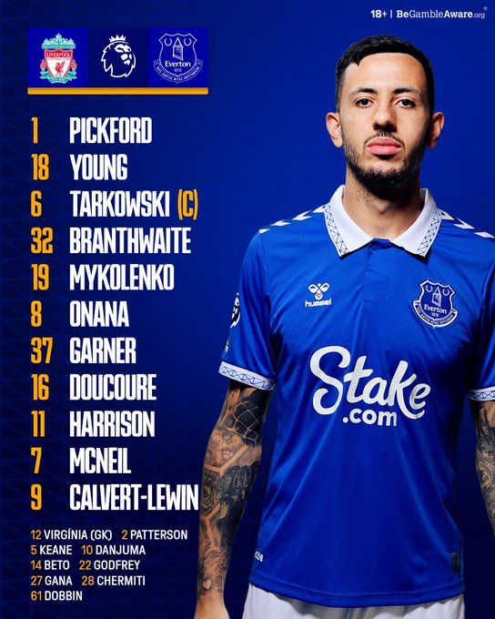 تشكيل إيفرتون الرسمي لمباراة ليفربول في الدوري الإنجليزي