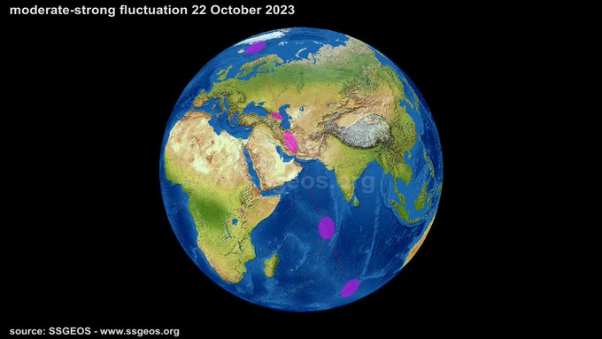 قبل ذلك بساعات قليلة، نشر هوغربيتس رسمًا بيانيًا وأشار إلى أن "الذروة القمرية العالية (الخضراء) في الليلة الماضية ستدعم حدوث زلزال كبير تقريبًا"، وحدد الفترة بين 23 و24 أكتوبر.