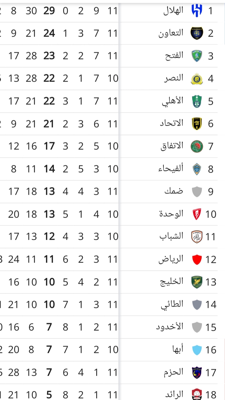 ترتيب الدوري السعودي