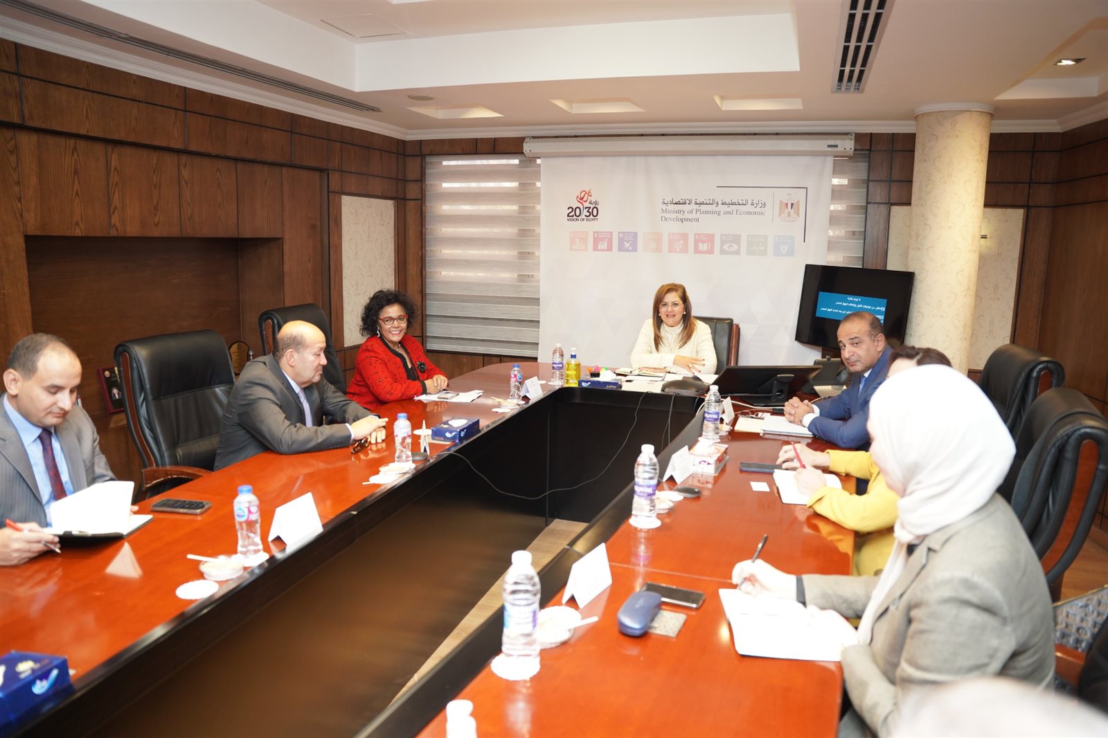 وشارك باللقاء د.أحمد كمالي نائب وزيرة التخطيط والتنمية الاقتصادية، د.منى عصام مساعد الوزيرة لشئون التنمية المستدامة، السفير هشام بدر مساعد الوزيرة للشراكات الاستراتيجية والتميز والمبادرات، كمال نصر مساعد الوزيرة لشئون المكتب الفني، د شريفه شريف المدير التنفيذي للمعهد القومي للحوكمة والتنمية المستدامة، السفير حازم خيرت مدير مكتب التعاون الدولي بالوزارة، ووفد ممثل عن وزارة الخارجية.