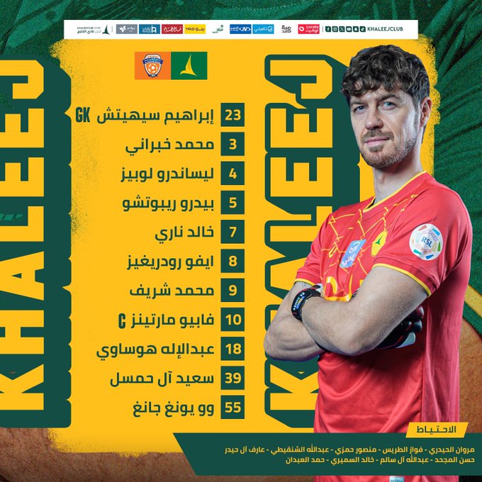 تشكيل الخليج الرسمي أمام الفيحاء في الدوري السعودي