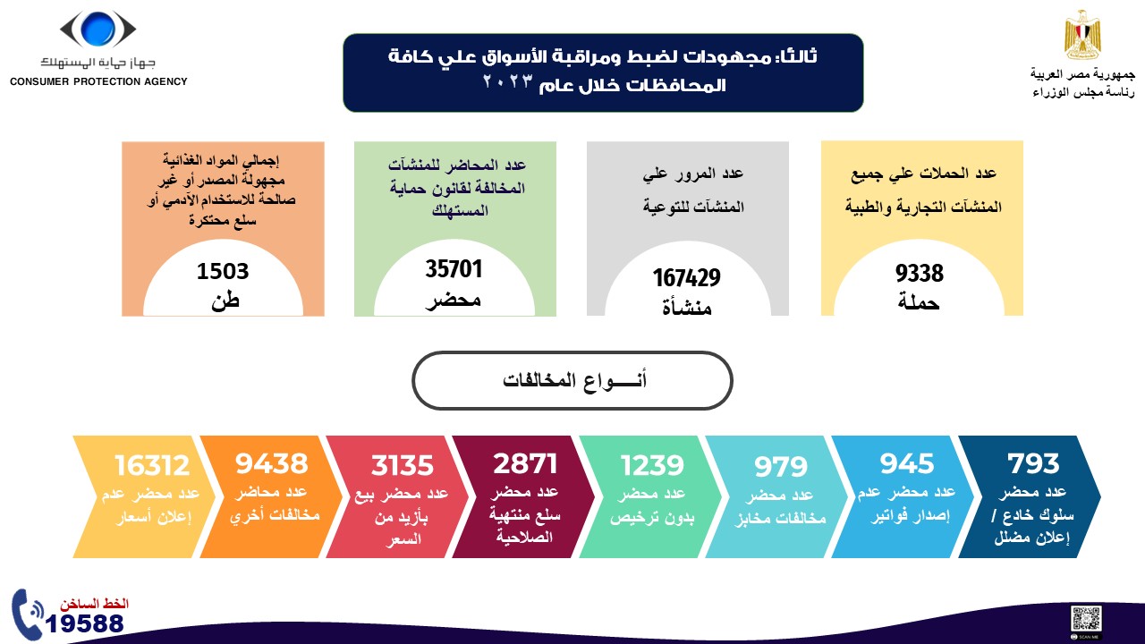 بالإنفوجراف.. الحصاد السنوي لنشاط جهاز حماية المستهلك خلال 2023