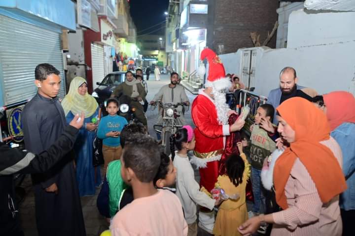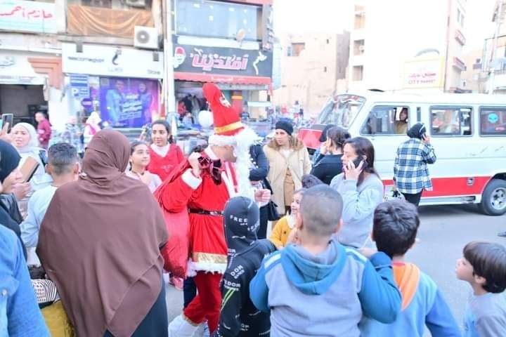 شباب يتنكرون فى زى بابا نويل لتوزيع هدايا رأس السنة على المواطنين بقنا