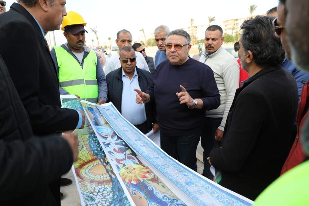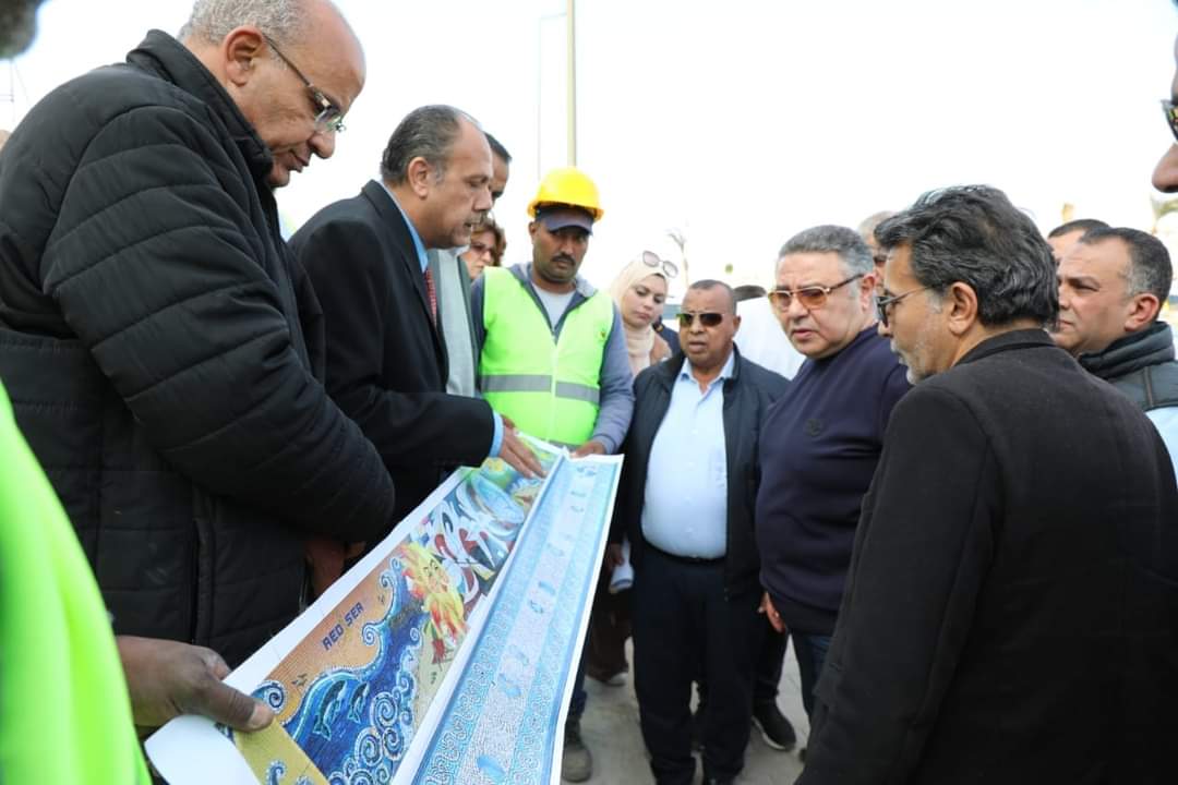 رافق المحافظ اثناء الجولة اللواء تامر سمير رئيس الادارة المركزية لشئون مكتب المحافظ ،اللواء ياسر حماية رئيس مدينة الغردقة ،المهندس حسني منصور رئيس جهاز التعمير اللواء محمد صلاح رئيس حي جنوب الغرقة ومهندسي المقاولون العرب ومجموعة من الفنانين التشكيليين القائمين على تطوير الجدارية بطريق المطار.
