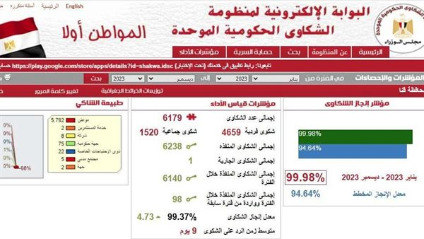 وأضاف أنه تم تلقي 6197 شكوي خلال عام 2023 ، منها 4659 شكوي فردية ، و 1520 شكوي جماعية تم الرد عليها جميعا، وبلغ اجمالي الشكاوى المنفذة 6140 شكوى، فضلًا عن تنفيذ 98 شكوى واردة من فترة سابقة وتنوعت طبيعة الشكاوى ما بين شكاوى مواطنين وشكاوى خدمة مستثمرين وشركات مرافق وجهات حكومية وذوي احتياجات خاصة، ومجتمع مدني.