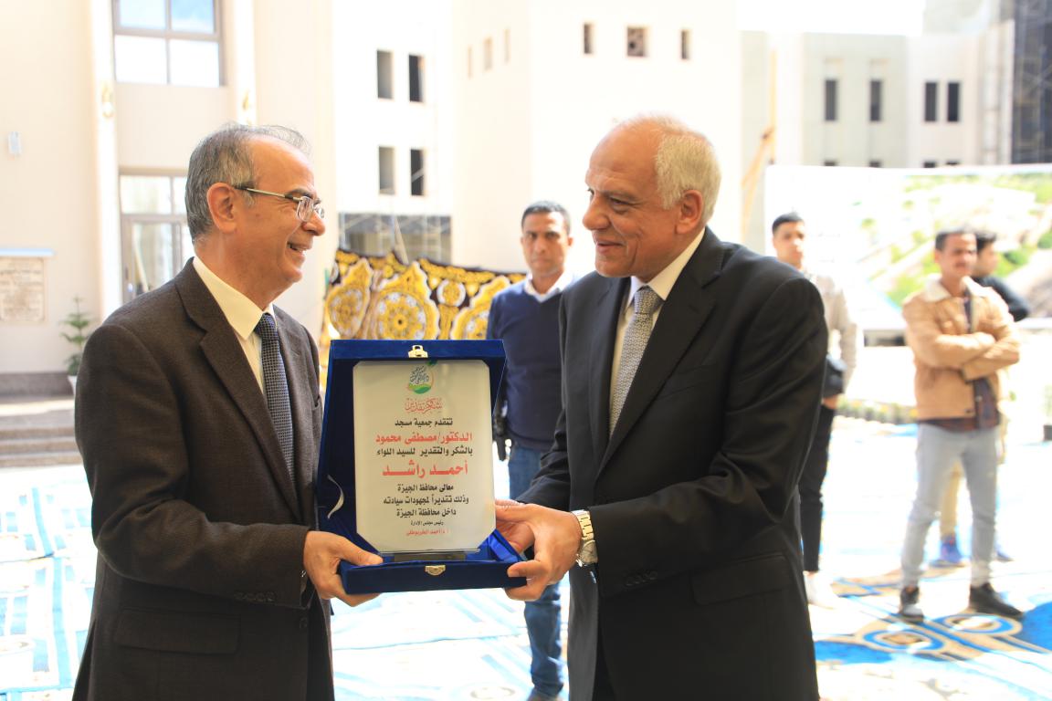 وخلال افتتاح المسجد هنأ اللواء أحمد راشد مواطني محافظة الجيزة بمناسبة حلول شهر رمضان المبارك مؤكداً علي ضرورة التراحم والتكافل وتضافر الجهود لخدمة الوطن والمجتمع .