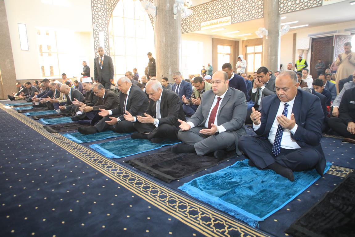 وعقب الافتتاح ادي محافظ الجيزة ويرافقه محافظ الوادي الجديد ومرافقيه صلاه الجمعة داخل المسجد والتي كان عنوان خطبتها " شهر رمضان ومكارم الاخلاق ويوم الشهيد" .