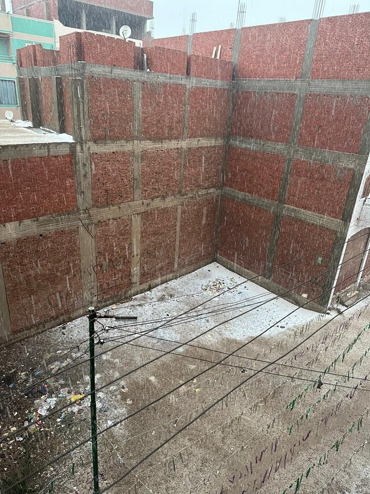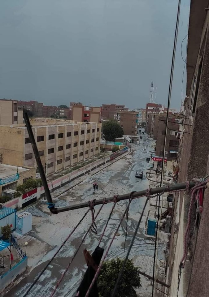 وكذلك مدينة القناطر الخيرية التي شهدت طقس شتوي شديد البرودة وتساقطت الثلوج لأول مرة بالشوارع مع أمطار شديدة على معظم مناطق المدينة.