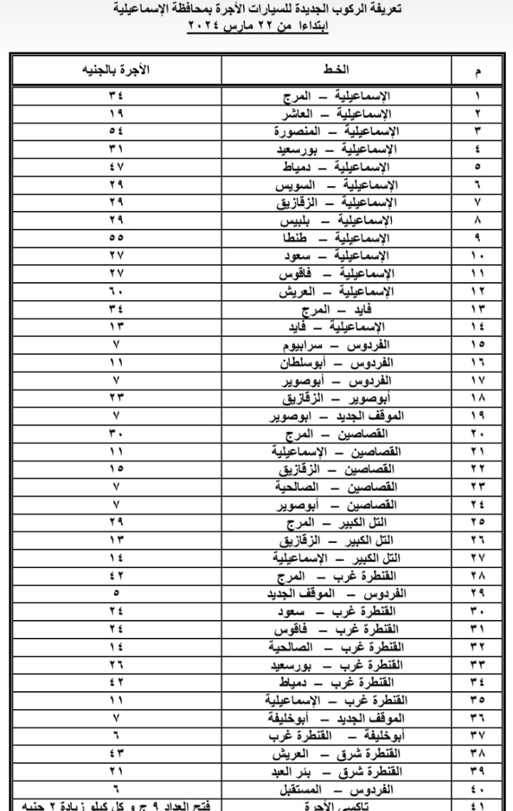 الوفد تنشر تسعيرة الركوب الجديدة بالإسماعيلية